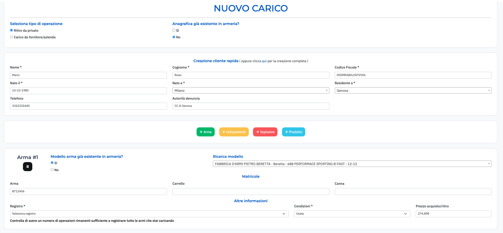 Aggiunto un nuovo modulo in formato PDF utilizzabile quando si vendono una o più armi da fuoco ad un cliente privato.
